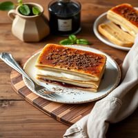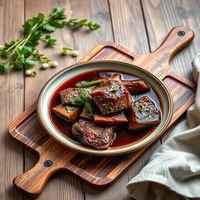 Slow-cooked beef in Barolo red wine with herbs