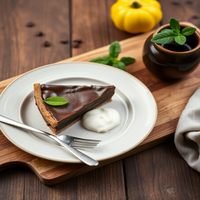 Rich and velvety chocolate pie with a soft center, served warm with a touch of cream