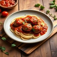 Italian meatballs served with spaghetti and red sauce