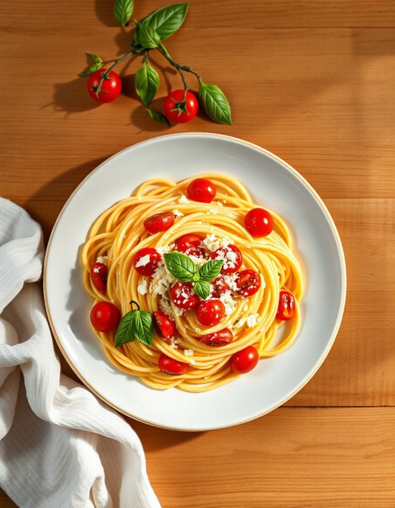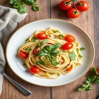Pasta with fresh arugula and cherry tomatoes