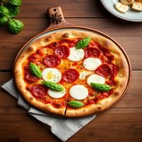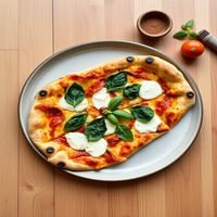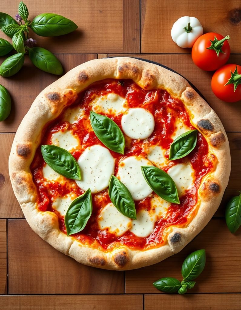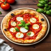 Margherita pizza with tomato sauce, mozzarella, and fresh basil