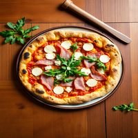 Pizza with prosciutto, arugula, and Parmesan