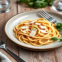 Pasta with carbonara sauce and Parmesan